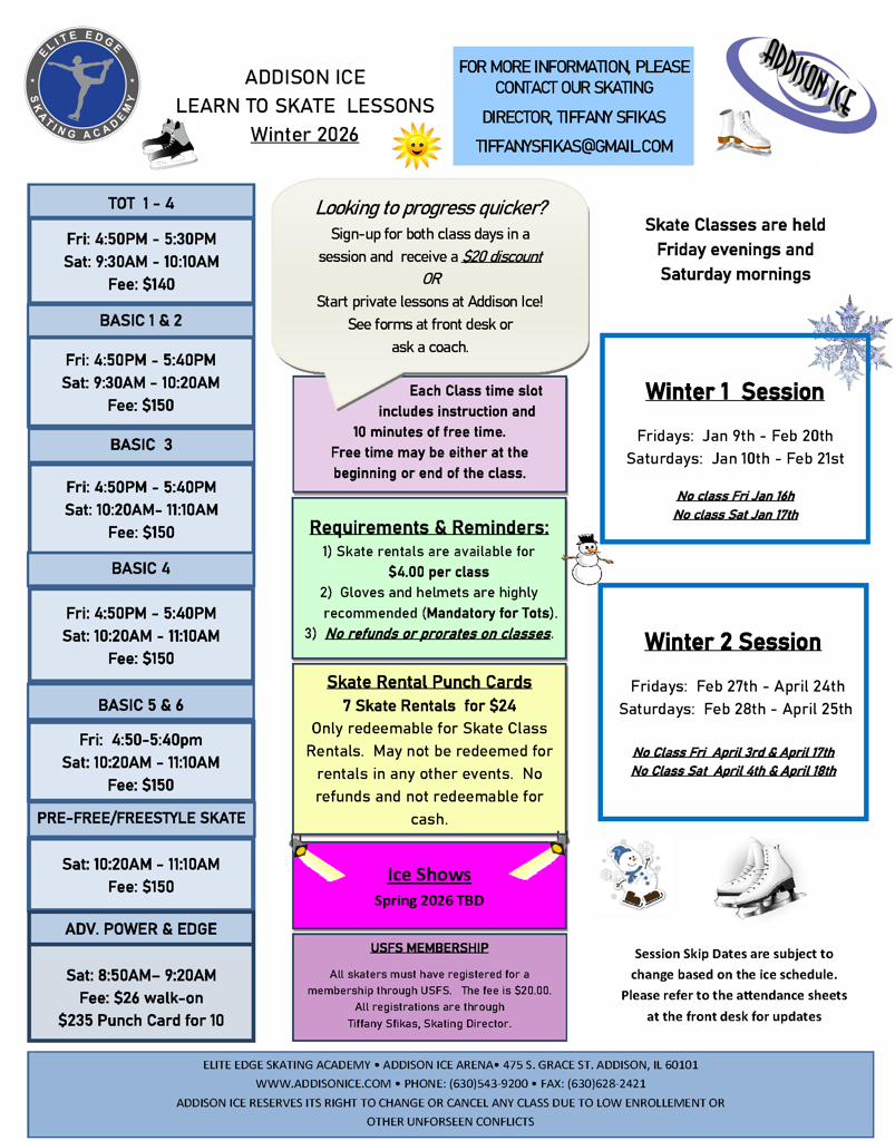 FALL 2025 LEARN TO SKATE CLASS SCHEDULE