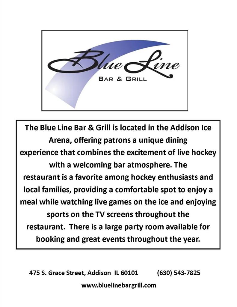 Blue Line Bar & Grill located in Addison Ice for your food and beverage needs!